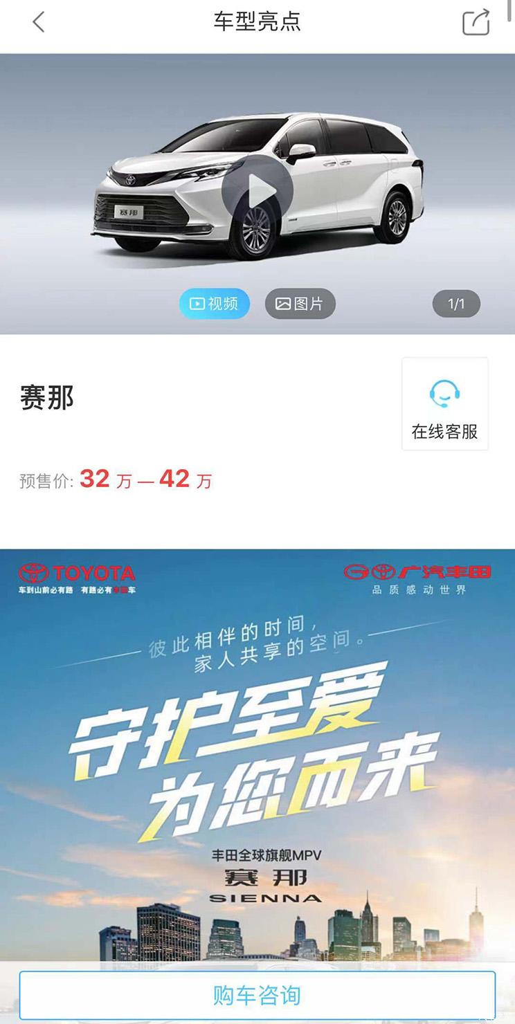 | 丰田赛那 | 32-42(预售价) | 5180/1995/1786 | 3060 |