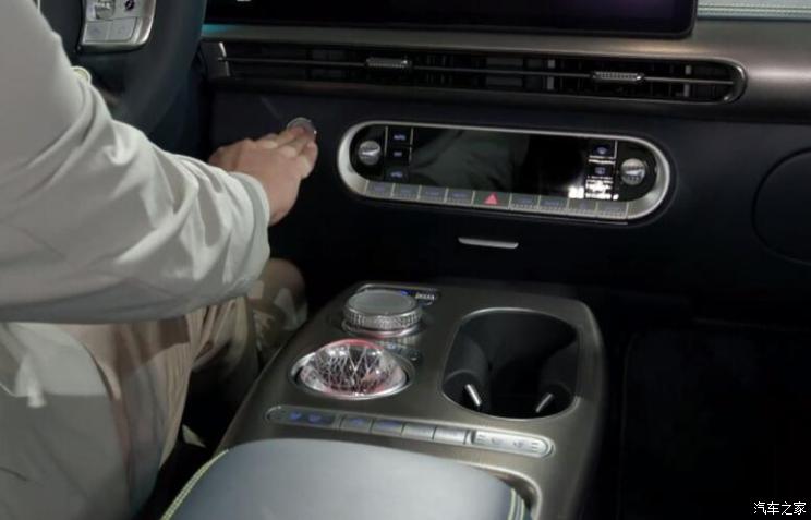 该车的另一个亮点是采用了“水晶球换挡”(Crystal Sphere),当车辆没启动的时候,是一个水晶球,启动后则翻转切换到旋钮挡把,非常的精致。