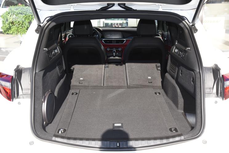 车尾部分,Giulia Veloce Ti车型尾部左侧的“Q2”标识与右侧的车型名称,均进行了黑化处理看起来更加运动;Stelvio Veloce Ti还搭配了小型的车顶扰流板。两款车型的两侧尾灯均采用了熏黑式设计,细长的灯组造型搭配后包围下方黑色的尾部扩散器和双边共两出的排气布局,让新车更加凸显其运动属性。
