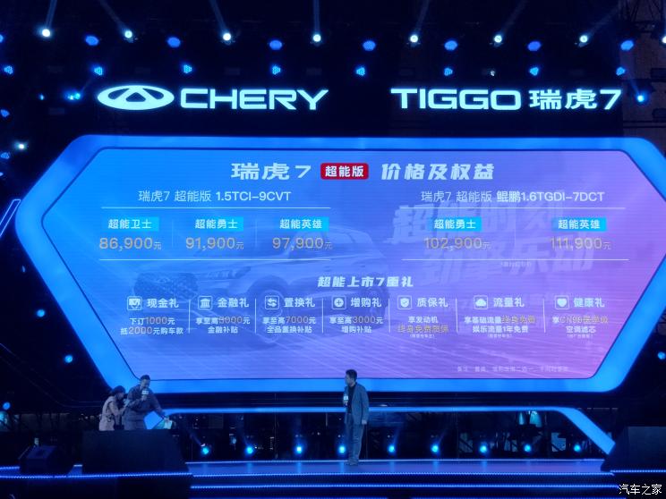 [本站 新车上市] 2022款奇瑞瑞虎7超能版正式上市,新车共推出5款配置车型,售价区间为8.69-11.19万元。2022款瑞虎7超能版在2021款超能版车型的1.6T动力配置基础上新增了1.5T动力配置,车型由现在的2款增加到5款。