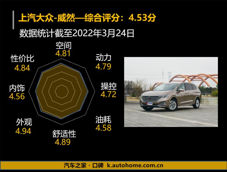 [本站 资讯] 各位车友大家好,第七十七期《百人口碑评新车》系列文章与大家见面了。本期的主角是上汽大众-威然。该车是大众品牌基于新车基于MQB Evo架构进行打造的MPV车型,2022款威然于2022年3月13日上市,新款威然总共5款配置版本,售价区间为28.68-39.98万元。威然在它的用户眼中究竟是一款怎样的车型,同时在日常使用时它究竟又有着怎样的表现?就请通过本期的《百人口碑评新车》来一探究竟吧。