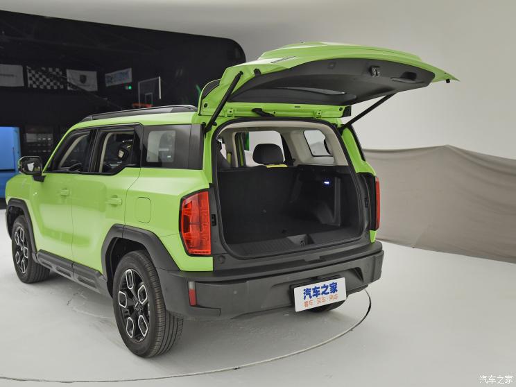 外观方面,新车前格栅与圆形大灯相连并在两侧略微上扬,格栅内部则结合了深色的横向条幅和银色的纵向条幅。保险杠下方为深色设计,看上去很硬朗。侧面依旧是硬朗的SUV造型,宽厚的侧门板使得侧窗看上去偏小,不知道实际体验效果如何。而在车尾,外凸的后备厢门辨识度很高,增添了一份个性。