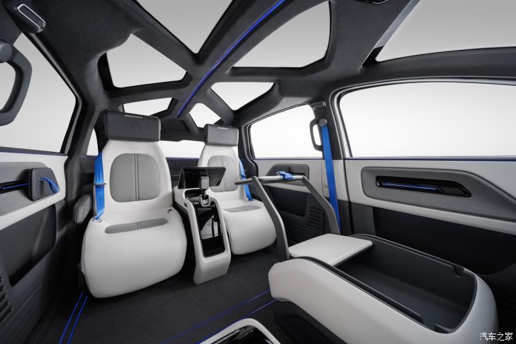 外观方面,新车集合了SUV+MPV的特点,轴距达到2830mm,采用了空间飞梭式车身,车身侧面采用了电动侧滑门。前大灯还采用了智能灯语,具有识别、提示和交互功能。后排独立座椅+纯平地板提升新车的出行舒适度。前排模块化可选配置则可以在座椅/售卖机/办公桌/游戏机/行李架等上进行组合, 提供多重场景形态及车内生态。