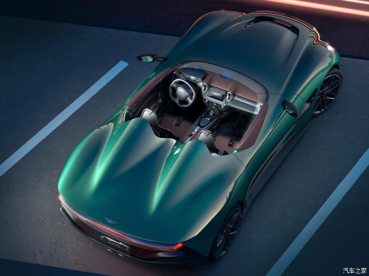 新车后部采用一体式超大尺寸面板的覆盖设计,整体造型是从DBR1和DB3S中汲取的灵感,将两座开放式驾驶舱车型的美感完美的展现出来。新车尾灯组采用贯穿式设计,点亮后具有不错的辨识度;后包围集成了一个大尺寸双层尾部扩散器装置,搭配中置双出的排气布局,进一步凸显运动氛围。