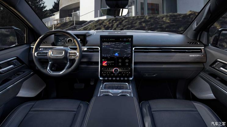 外观方面,新车采用了封闭式前格栅设计,中央镶嵌了“GMC”字样,两侧的大灯组采用了分体式设计,上方是L型的日间行车灯,下方与前包围相融合的是远近光灯组。此外,巨大的“GMC”标识也具有发光功能,整体搭配提升了科技氛围。